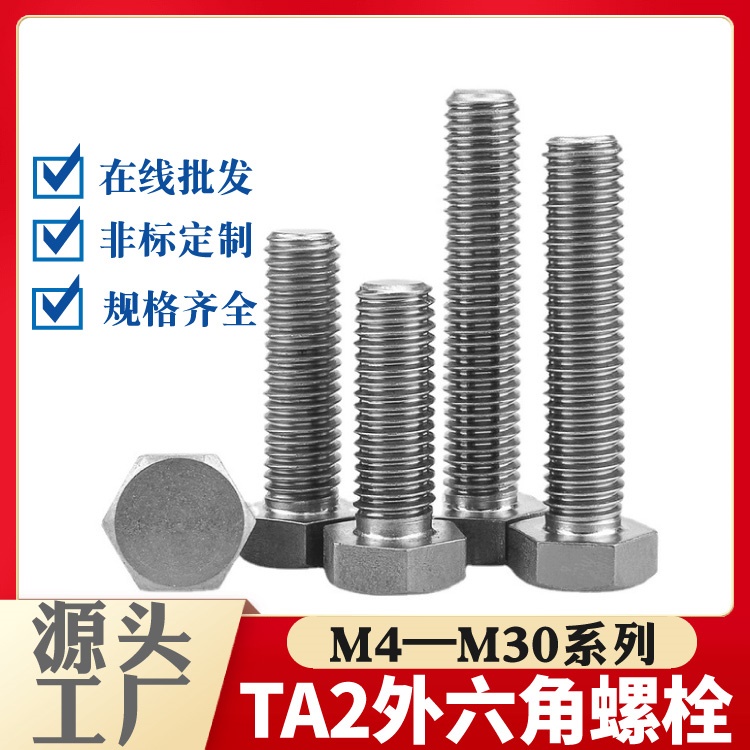 钛外六角螺栓钛合金螺栓TA2纯钛钛钢螺丝纯钛螺丝螺母垫片M4-M20