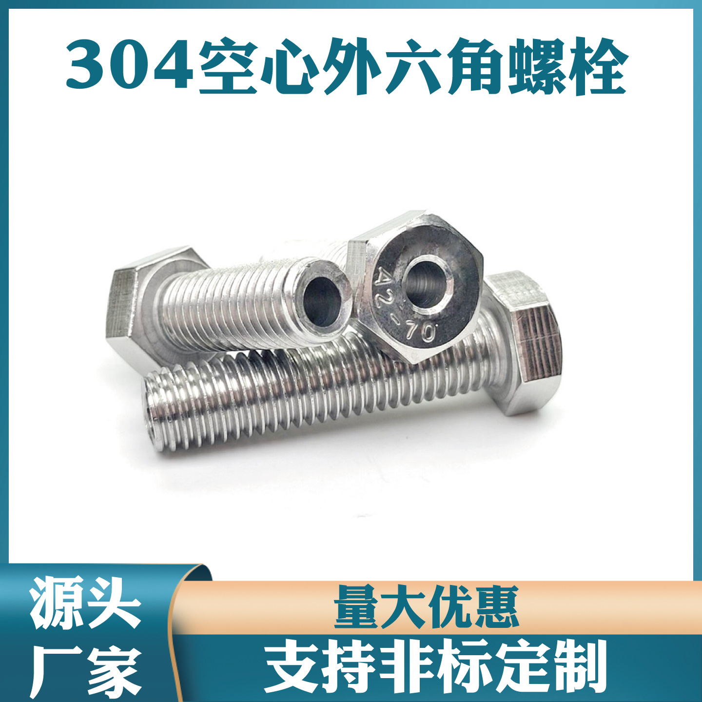 304/316不锈钢空心螺丝外六角通孔穿孔螺栓带孔中空螺丝大全M5M6